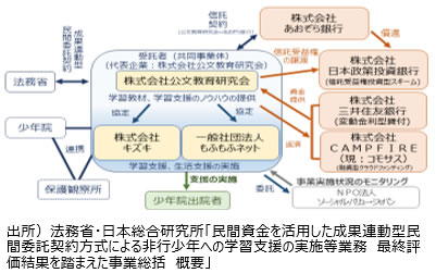 この度、その結果をまとめた「民間資金を活用した成果連動型民間委託契約方式による非行少年への学習支援の実施等業務 最終評価結果を踏まえた事業総括」を公表しましたので報告します。