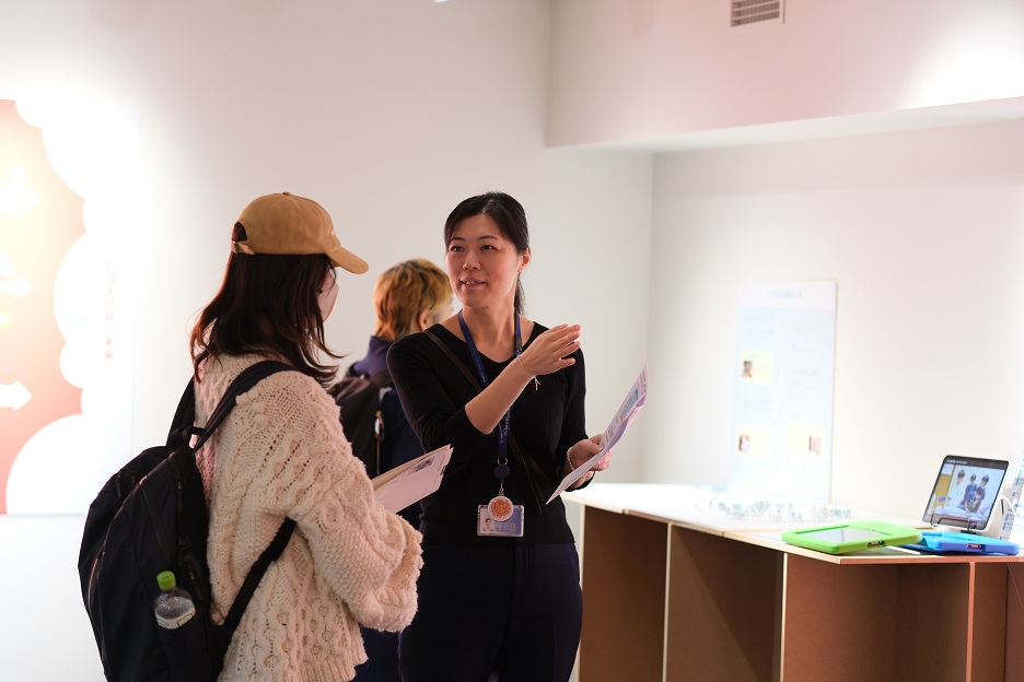 本イベントでは、講演のほか武蔵野美術大学と日本総研の共同研究や、武蔵野美術大学・日本総研がそれぞれ単独で展開しているプロジェクトの展示も行った。日本総研の展示では、来場者と研究員の対話を促す空間づくりを心掛けた。具体的には、来場者が「読まなくてはならない」文字数を減らすために、説明的な文章を最低限に留め、プロジェクトの想いや本質をキャッチコピーに凝縮したり、各プロジェクトの歩みを年表形式で表現したりした。視覚的にも直感的にも認識しやすい展示物とすることで、来場者からの質問が出やすかったのではないかと感じられた。