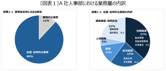図表1はとある会社の人事部における業務量全体に占める「戦略的な業務」と「定型・定例的な業務」の割合を図示したものであるが、業務時間の大半が「定型・定例業務」に割かれていることが分かる。日本総研でさまざまな企業の支援を行っているが、実はこのような業務実態となっている企業は多い。