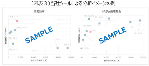 業務実態の可視化を行う際は、業務量調査票などを用いて、どの業務にどれだけの時間を投入しているかを調査することが一般的である。日本総研では、人事業務を分析し他社比較できる「人事機能調査・診断ツール」を使用している。(図表3)