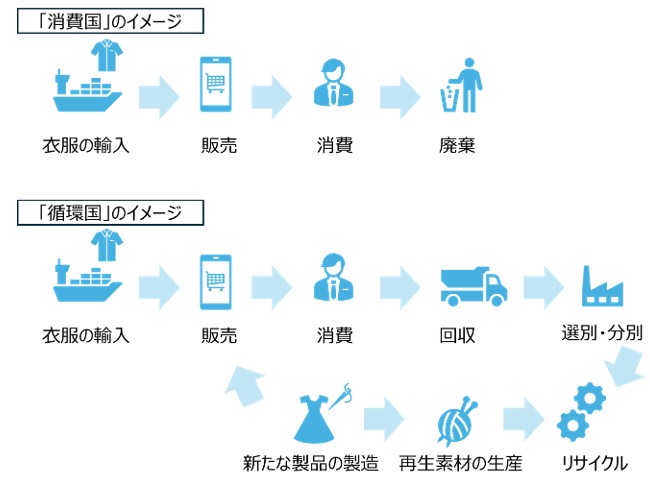 ただし、循環は技術だけでは成立しない。これらの技術を活用して「循環国」を目指すためには、廃棄衣料の回収率を高めることや、回収時にある程度の「分別」を消費者が行う仕組みを社会全体に組み込む制度設計が不可欠である。企業に回収・再資源化の責任を求める考え方や、再生素材の利用を促す仕組みなど、政策的な後押しが求められる。同時に、ビジネスモデルも変化すべきだ。「売って終わり」ではなく、使用後に回収し、再び資源として活用するまでを含めた事業設計が必要になるだろう。