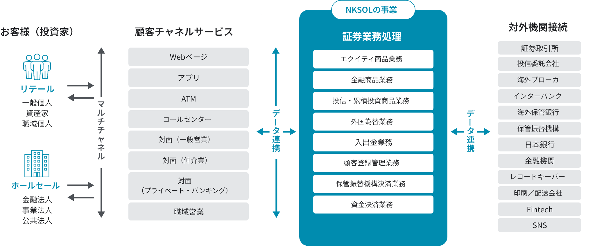 対外接続機関として、インターネット上でコンシューマ向けサービスを提供するFintech企業やSNS企業とも積極的に連携することで、個人投資家への直接的なアプローチを可能とする仕組みを整備しています。