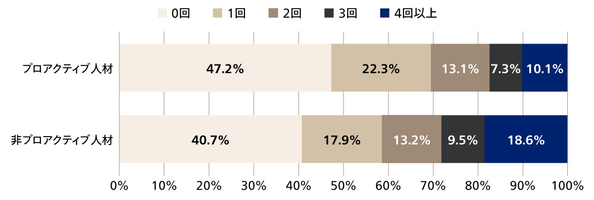 3. プロアクティブ度が高い人材は転職回数が少なく、プロアクティブ度の向上施策は人材流出にはつながらない