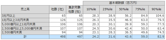 (※1)役員報酬サーベイの方法論は、主として本調査で採用した有価証券記載事項から抽出する方法と、アンケートによる方法がある。それぞれの方法にメリット・デメリットがあり目的に応じて方法論を選択、または組み合わせて使用することが重要である。