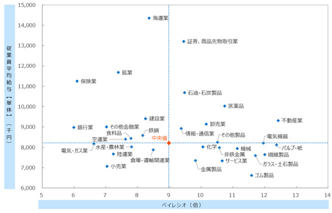 業界によって従業員の職種構成と給与水準に違いがあることから、各社で比較検討する際には業界またはそれをもとにしたピアグループ間でのペイレシオ比較が有効である。
