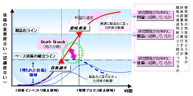 同社のように、ある程度研究開発投資に関するコスト、および得られるキャッシュフローの現在価値を定量的に算出するスキームを確立している企業であれば、当該研究開発の効率性を分析し、その結果を研究開発戦略へフィードバックすることも可能であろう。しかしながら、一般の製造業企業の場合(ここでの一般とは、医薬関係とは異なり無数の特許や技術から特定の製品が形成されているような場合を指す)、このようなフィードバック手法を確立することは難しく、現在様々な試行が試みられている段階にある。近年、知的財産の有効活用や技術移転の重要性などが指摘されるようになっており、技術の価値評価や、研究開発の効率性を定量的に判断できる手法を確立する必要性が高まっている。